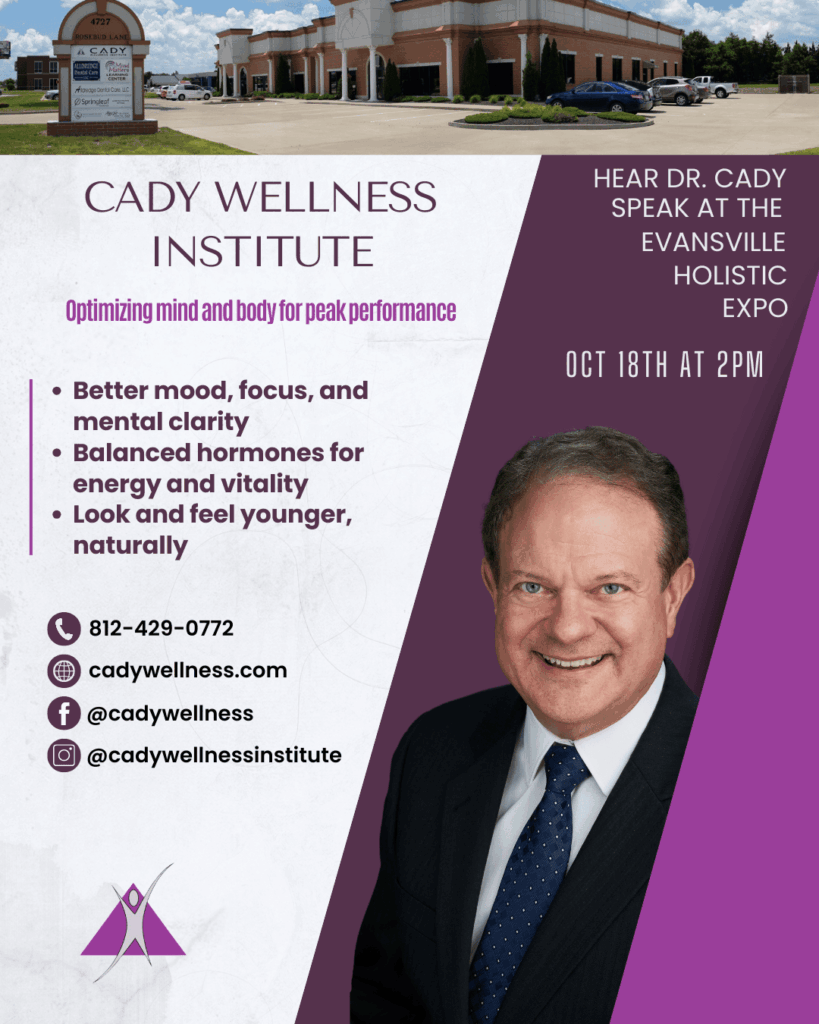 Join us at the the Evansville Holistic Expo, one of the largest wellness gatherings in the Tri-State area! This is your chance to meet Dr. Cady and the Cady Wellness Institute team in person, explore our approach to whole-person care, and learn how optimizing your health can hell you feel, and live, your absolute best.